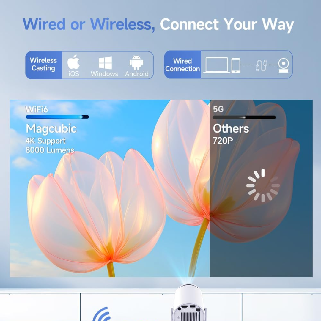 Setup is simple. Plug it in, connect it to your device via HDMI, USB, or Wi-Fi, and start projecting. The intuitive interface makes it easy for anyone to use, no technical skills required.